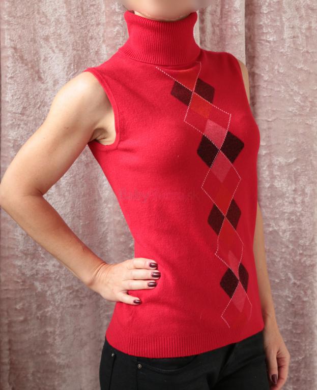 Teplý roláčik bez rukávov, s preppy vzorom kosoštvorcov, v super stave ako nový. Materiál má vyššiu gramáž, 45% vlny. Veľkosť 42. Rozmery rada zašlem. Poštovné 2€