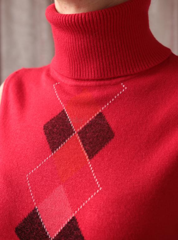 Červený roláčik s kosoštvorcami veľ.42
